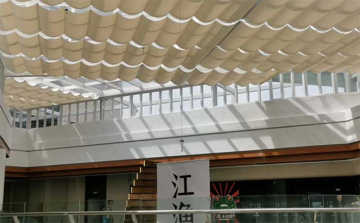 佛山順德大良濤匯廣場采光頂電動遮陽棚 天棚簾實拍 工廠占地3000㎡,集設(shè)計、生產(chǎn)、銷售,安裝等于一體的窗簾公司